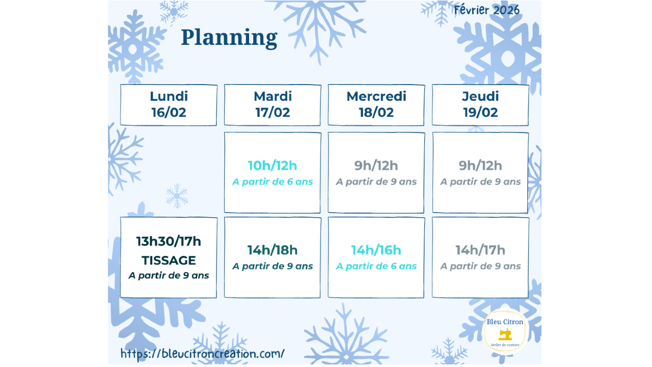 Voici le planning des ateliers pour les vacances de février. Au programme, de la couture et également du tissage.